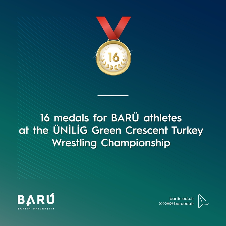 The ÜNİLİG Green Crescent Turkey Wrestling Championship was organized by the Turkish University Sports Federation (TÜSF) and hosted by Burdur Mehmet Akif Ersoy University (MAKÜ). Bartın University (BARÜ) Faculty of Sports Sciences students returned with 16 medals from the organization, which was held with the participation of 619 athletes from 63 universities.