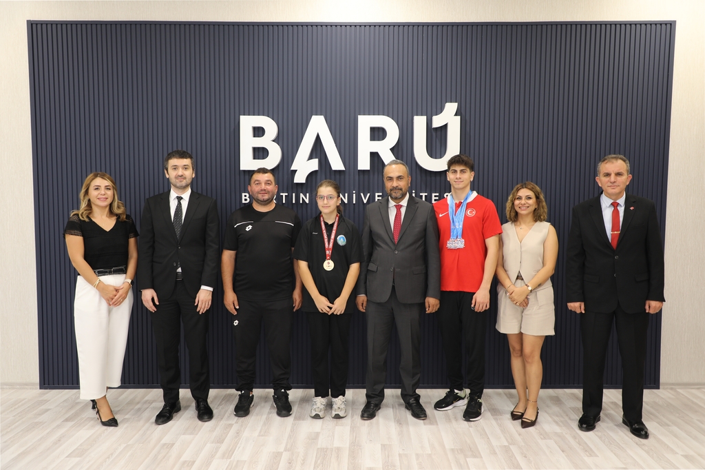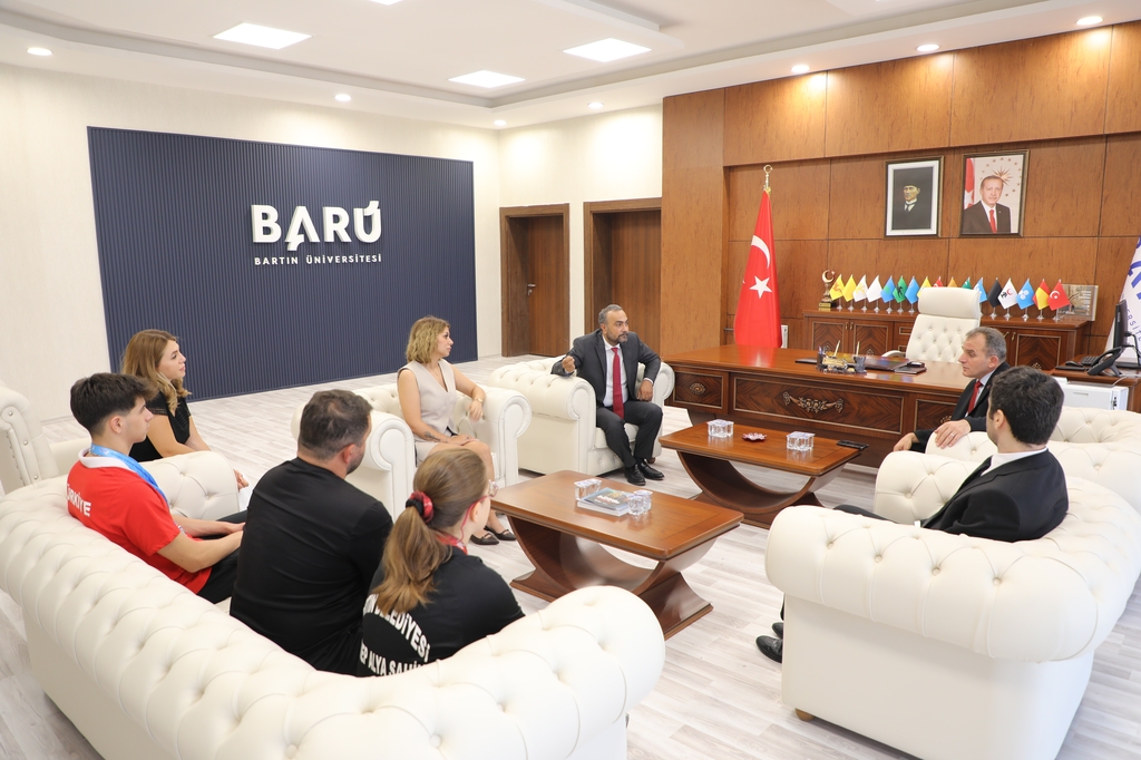 A visit was paid to Bartın University (BARÜ) Rector Prof. Dr. Ahmet Akkaya by young athletes Korcan Bulut Özdemir and Zeynep Alya Şahin, who have achieved outstanding success in different branches.
