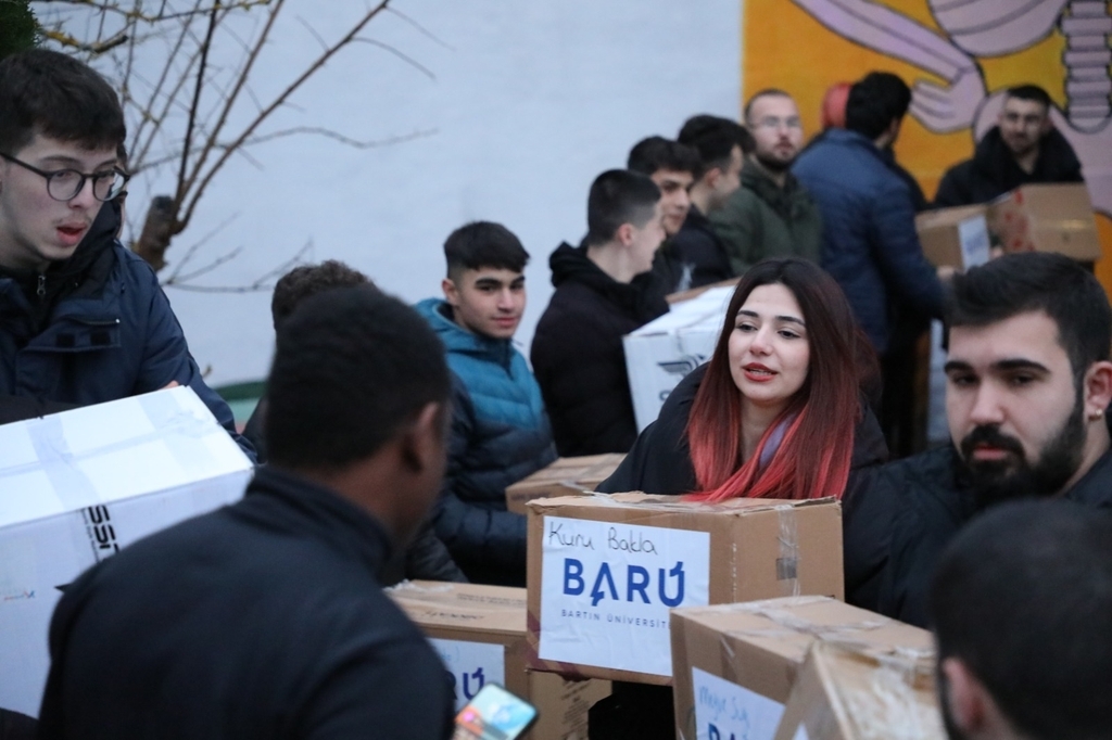 Bartın University (BARU) mobilized to support the aid campaign launched under the coordination of Bartın Governorship for ten provinces affected by the earthquakes, the epicenter of which was Kahramanmaraş. BARU academic and administrative human resources, students, and alumni delivered emergency supplies consisting of basic food products, diapers, baby food, gloves, beanies, and blankets to the aid points.