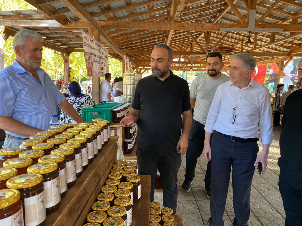 The 1st Honey Festival was held in Bartın’s Kumluca Municipality with the aim of promoting the cultural and economic values of the region. Bartın University (BARÜ) Rector Prof. Dr. Ahmet Akkaya attended the event held at the Kumluca Municipality Recreation Area. Visiting the stands set up in the festival area and receiving information about production activities from Kumluca Mayor Mustafa Bozkurt and regional producers, Rector Prof. Dr. Akkaya stated that BARÜ will contribute to efforts to transform local products into national and international brands.