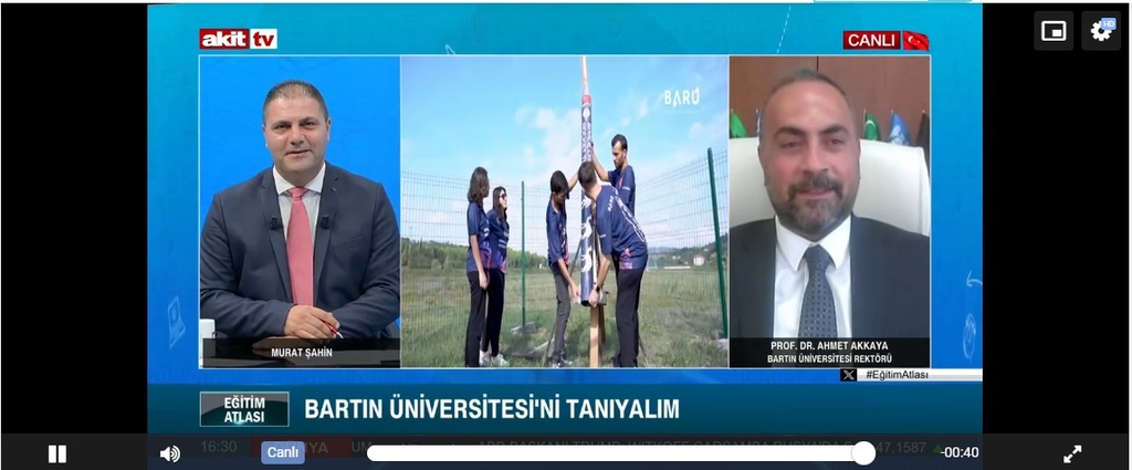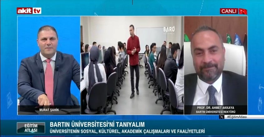 Bartın University (BARÜ) Rector Prof. Dr. Ahmet Akkaya participated in the live broadcast of the program “Eğitim Atlası” on Akit TV, where he introduced the opportunities offered by the university to prospective students.