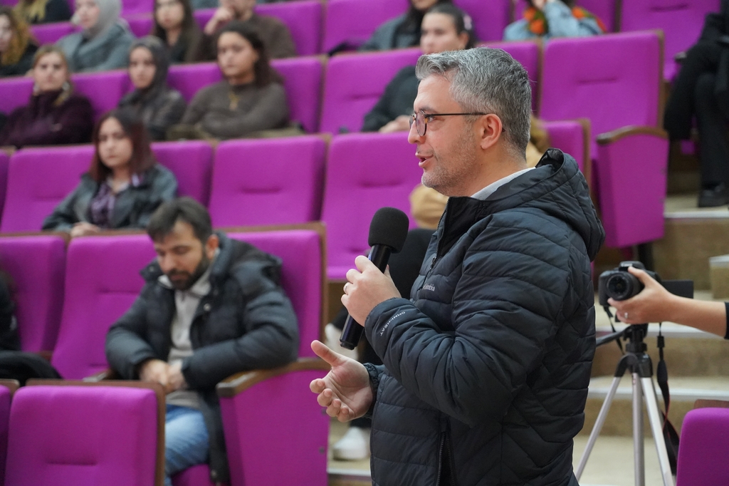 A program was organized in cooperation between Bartın University (BARÜ) and the Bartın Chief Public Prosecutor's Office with the aim of raising awareness among students against increasingly common digital fraud activities. In the program titled “Digital Fraud and IBAN Renting,” Bartın Public Prosecutors Mustafa Turan and Emrullah Omuzoğlu met with young people and provided information about fraud methods carried out over the internet and social media.