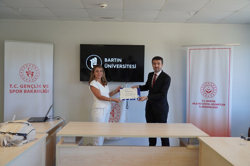 The program was attended by Vice Rector Prof. Dr. Selçuk Gümüş, Acting Dean of the Faculty of Sports Sciences Prof. Dr. Şuayip Yüzbaşı, and Bartın Provincial Director of Family and Social Services Yavuz Korkmaz.