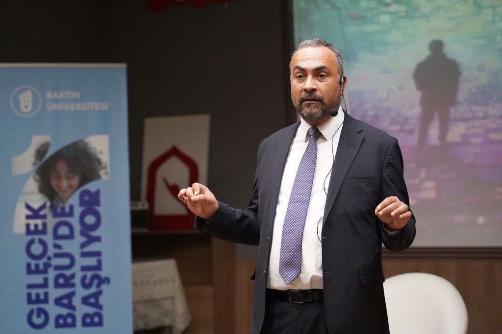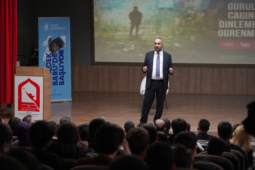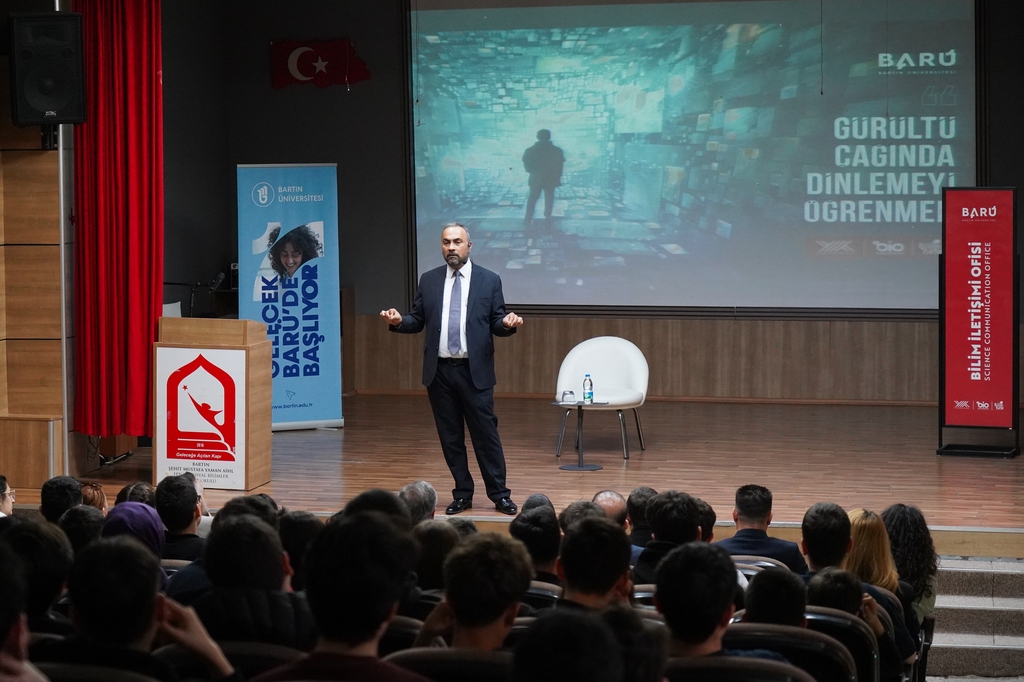 The Science Café meetings organized by the Bartın University (BARÜ) Office of Science Communication continue. In this context, BARÜ Rector Prof. Dr. Ahmet Akkaya met with students at Bartın Şehit Mustafa Yaman Anatolian Imam Hatip High School. In the event titled “Learning to Listen in the Age of Noise,” the role of effective listening skills in daily life was emphasized.