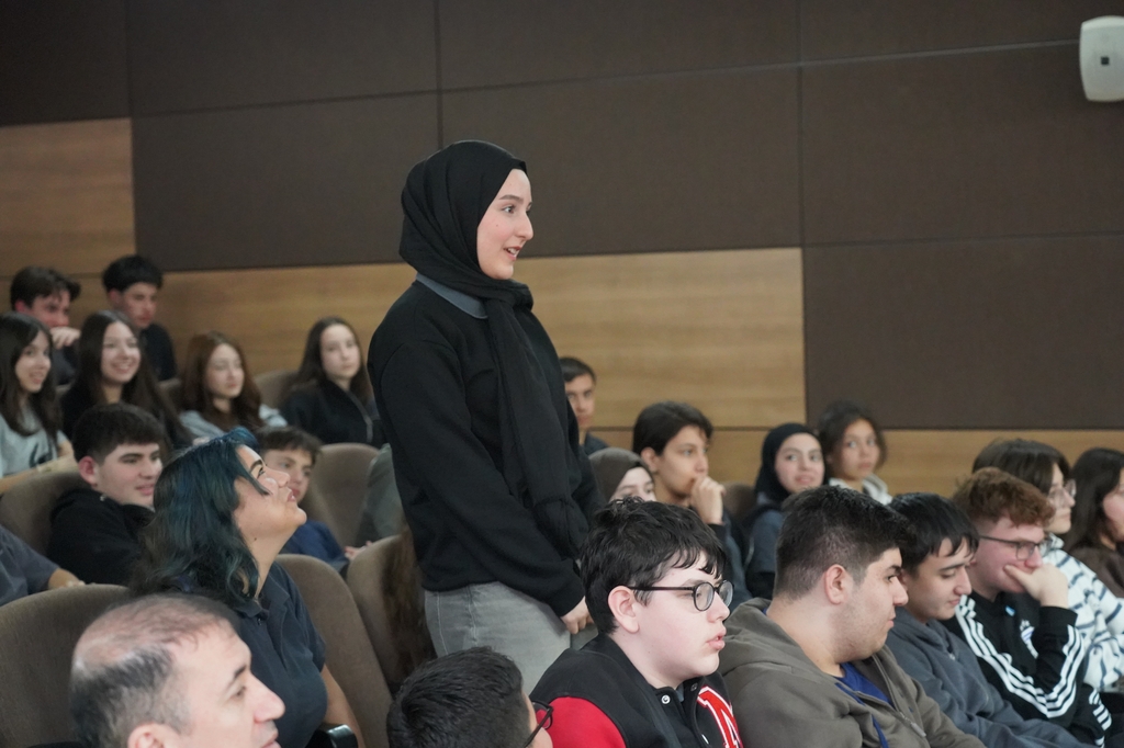 Students who responded to the questions posed by Rector Akkaya had the opportunity to reflect on their own listening habits. In the interactive and friendly atmosphere of the program, students also shared their views on attention span and classroom focus.