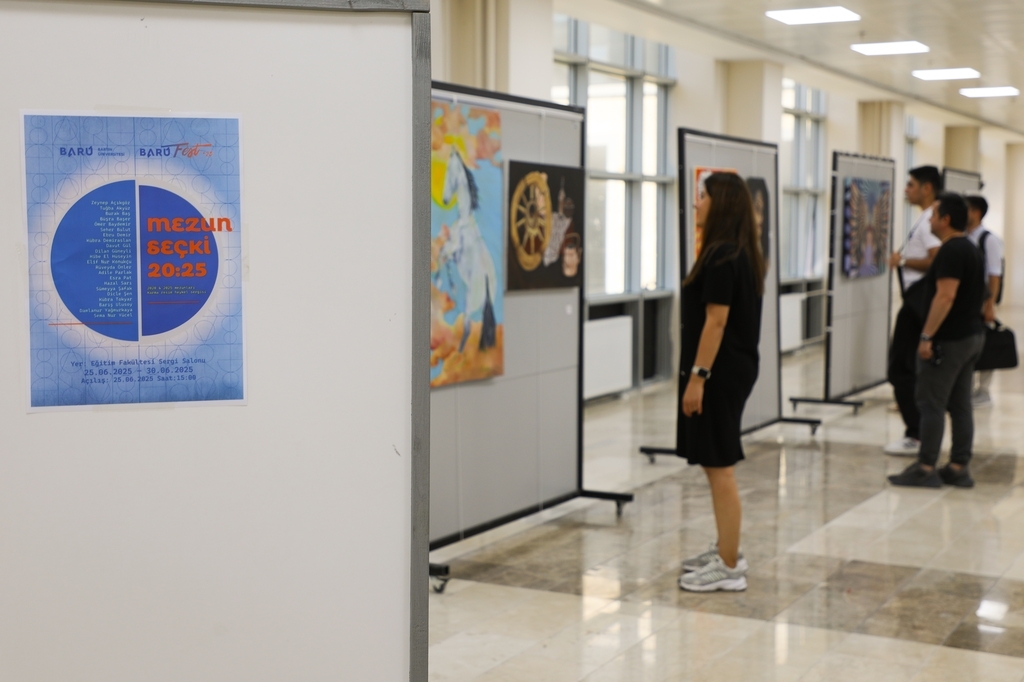 As part of BARÜFEST, the "Graduate Selection 20:25" group painting and sculpture exhibition opened to the public in the Faculty of Education Exhibition Hall. Students enjoyed drawing and playing chess in the art workshop held in the pond area.
