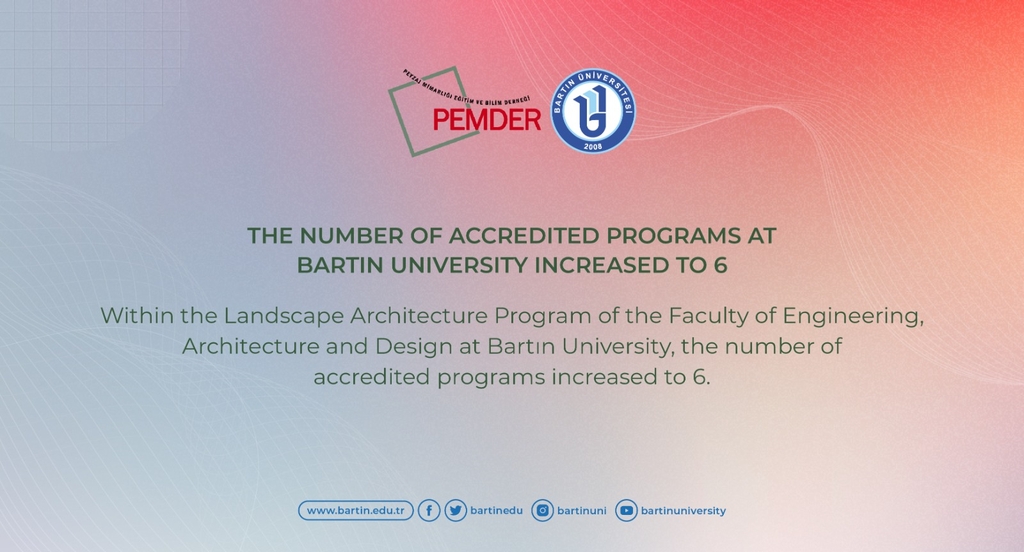 Within the Landscape Architecture Program of the Faculty of Engineering, Architecture and Design at Bartın University, the number of accredited programs increased to 6. The accreditation process continues in 5 programs at Bartın University.