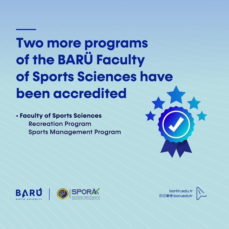 Bartın University (BARÜ) continues to achieve significant success in accreditation processes. In this context, most recently, the Sports Management Department and the Recreation Department of the Faculty of Sports Sciences were accredited by the Sports Sciences Education Programs Accreditation Board (SPORAK).