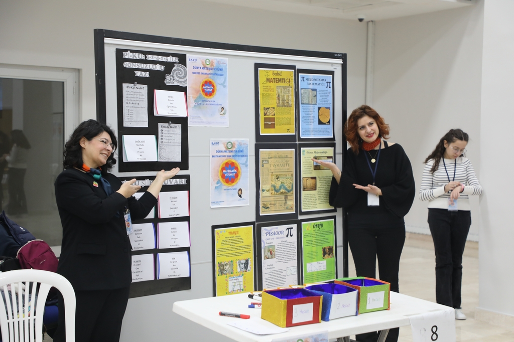 In the event, which drew intense interest from students of different age groups, participants had the opportunity to see the interdisciplinary importance of mathematics closely, while both having fun and learning. Additionally, paintings, experiments, and informative materials on mathematics were exhibited in the foyer area throughout the day.